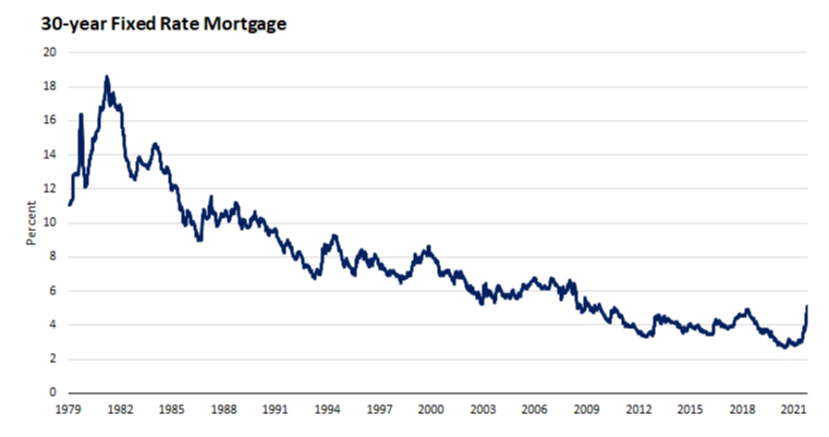 On top of everyone’s mind is the fact that the average 30-year fixed-rate mortgage moved above 5% from 3% six months ago. But it’s worth noting that mortgage rates hit 5% in 2011 and 2018 – and averaged over 7% from 1990 to 2010.